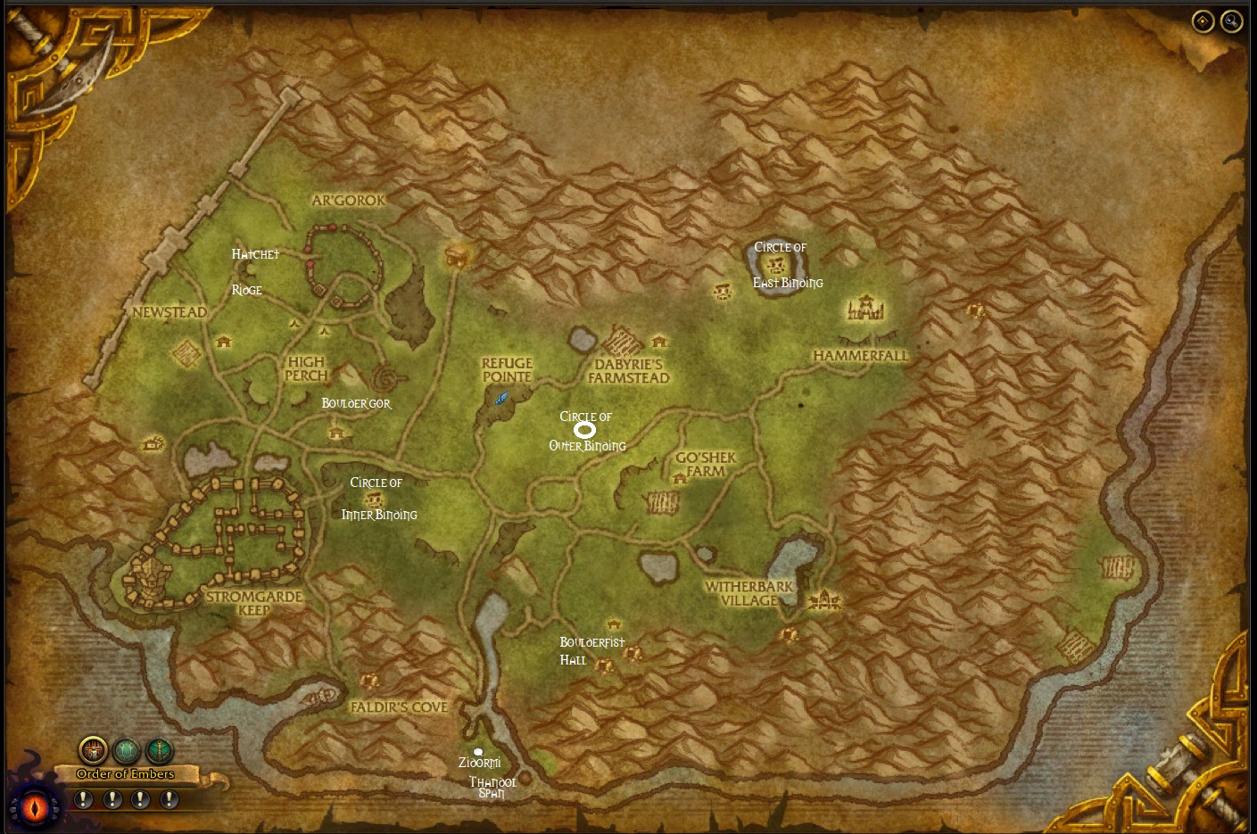 There appears to be three areas for the achievement that are not on the new map. Circle of West Binding is now Hatchet Ridge, Northfold Manor is now Ar'Gorok and Galen's Fall is now Newstead.